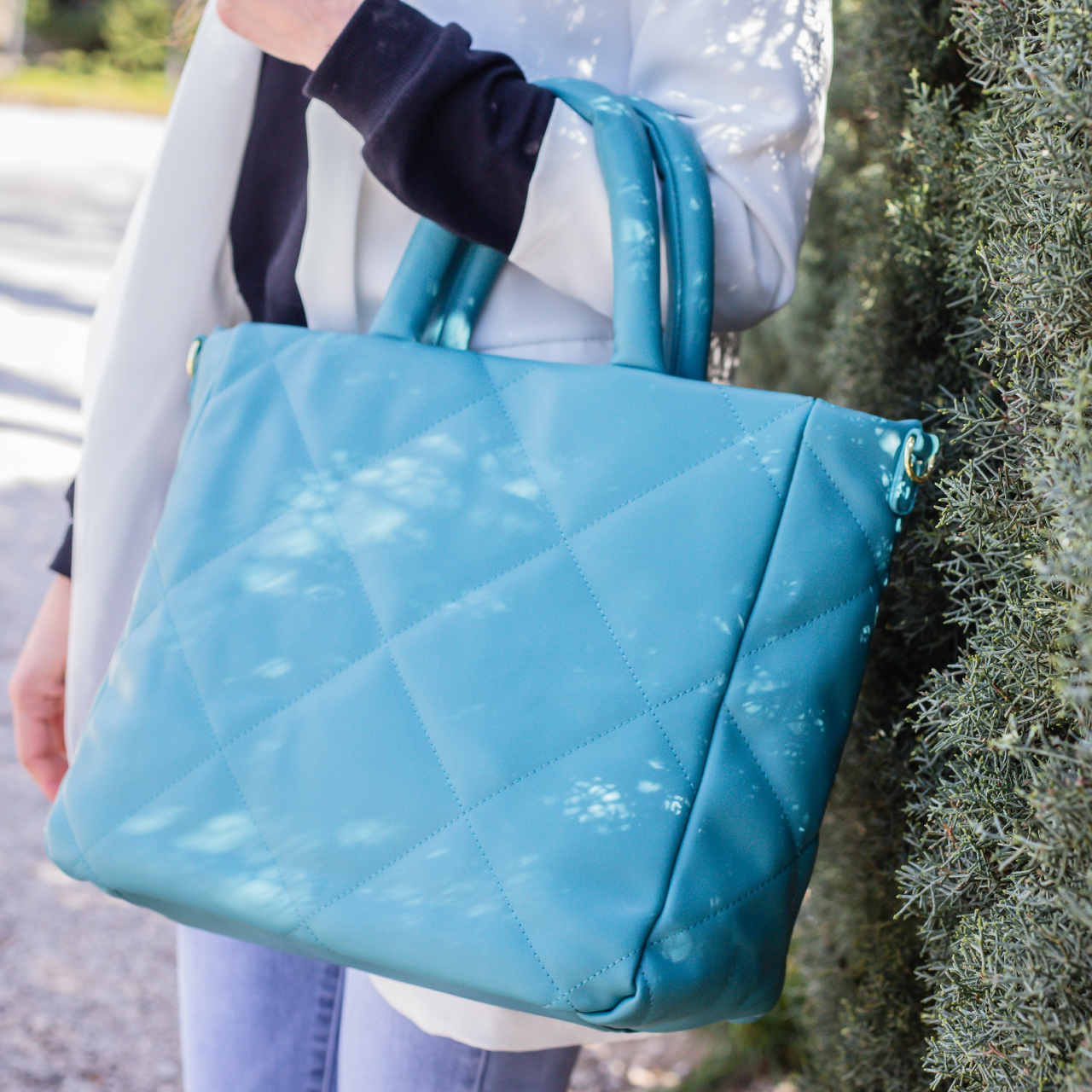 Shopping bag matelassè con manico morbido